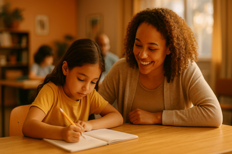 Alfabetizarea nu înseamnă doar litere; înseamnă încredere. Construim rutine simple și constante: citire cu voce tare, înțelegerea textului, scriere ghidată și matematică de bază. Lucrăm individual sau în grupe mici, cu fișe clare și feedback imediat, astfel încât greșeala devine oportunitate, nu rușine. Ținta este autonomia: „pot să citesc”, „pot să explic”, „pot să socotesc”.